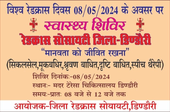 डिंडौरी, जबलपुर दर्पण न्यूज। मुख्य चिकित्सा एवं स्वास्थ्य अधिकारी ने बताया कि 08 मई 2024 को रेडक्रास दिवस के अवसर…