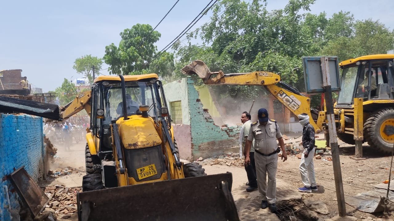 जबलपुर दर्पण क्राईम ब्यूरो। कलेक्टर डॉ इलैयाराजा टी एवं पुलिस अधीक्षक सिद्धार्थ बहुगुणा तथा नगर निगम कमिश्नर आशीष वशिष्ठ के मार्गदर्शन में शातिर बदमाश राजा सोनकर भरतीपुर निवासी जिसके विरूद्ध शहर के अलग अलग थानों में 15 प्रकरण दर्ज है। बदमाश के द्वार ओमती थाना अन्तर्गत बल्ली मार्केट में 9 हजार 500 वर्गफुट की नगर निगम भूमि जिसकी बाजार कीमत लगभग 4 करोड़ 75 लाख रूपये होगी तथा 50 लाख रुपए की लागत से निर्मित सूकर पालन केन्द्र,टीन शेड से निर्मित दुकानों,आफिस एवं गैरिज को जमींदोज करते हुए नगर निगम की भूमि को कब्जा मुक्त कराया गया। विवाद की आशंका को देखते हुए कार्यवाही के दौरान एसडीएम अधारताल ओम नमः शिवाय अरजरिया,नगर पुलिस अधीक्षक ओमती आर.डी.भारद्वाज,तहसीलदार श्याम चंदेले,थाना प्रभारी ओमती एस.पी.एस.बघेल,थाना प्रभारी बेलबाग सुश्री प्रिंयंका केवट, घमापुर थाना प्रभारी जी.आर. चंद्रवंशी,हनुमानताल थाना प्रभारी उमेश गोल्हानी एवं पुलिस लाईन के बल के साथ नगर निगम अतिक्रमण दस्ता मौजूद था।