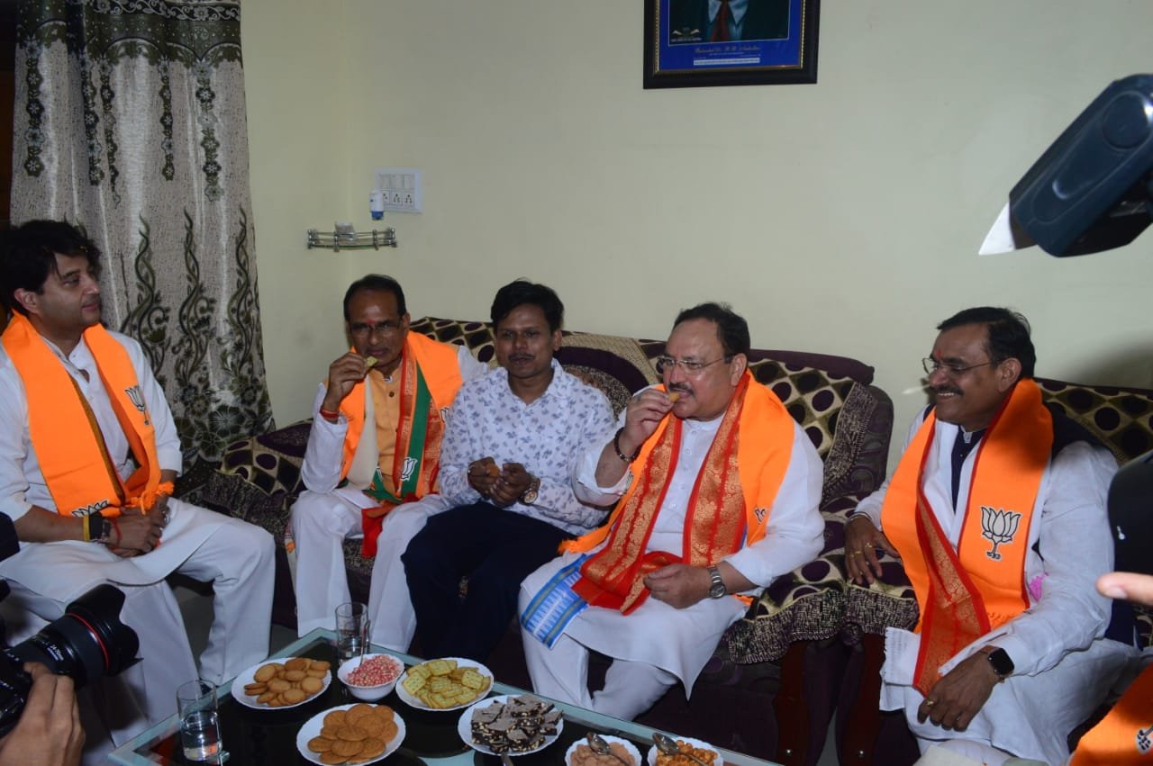 जबलपुर दर्पण नप्र। राष्ट्रीय अध्यक्ष जेपी नड्डा प्रवास के दौरान पूर्व विधानसभा अंतर्गत अनुसूचित जाति वर्ग के भाजपा कार्यकर्ता आशीष अहिरवार के निवास पहुँचे जहाँ समाज के लोगो से भेंट की। आशीष अहिरवार के द्वारा राष्ट्रीय अध्यक्ष व का फूल माला पहनाकर सभी का सम्मान किया गया साथ ही सभी अतिथियों ने चाय नाश्ता किया श्री नड्डा के साथ राष्ट्रीय सह संगठन महामंत्री शिवप्रकाश, मुख्यमंत्री शिवराज सिंह चौहान, प्रदेश अध्यक्ष वीडी शर्मा, अनुसूचित जाति मोर्चा के राष्ट्रीय अध्यक्ष लालसिंह आर्य,केंद्रीय मंत्री ज्योतिरादित्य सिंधिया, प्रदेश संगठन महामंत्री हितानंद, साँसद राकेश सिंह,मोर्चा प्रदेश अध्यक्ष कैलाश जाटव ने भी सामाजिक जनो से भेंट की।
