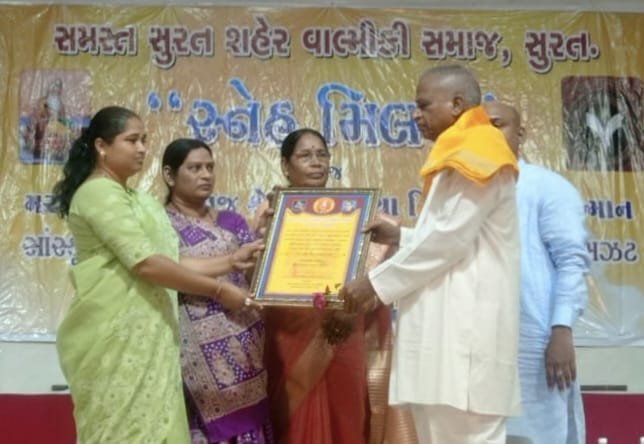 राज्यसभा सांसद बनने पर सूरत में सुमित्रा वाल्मीकि का हुआ सम्मान