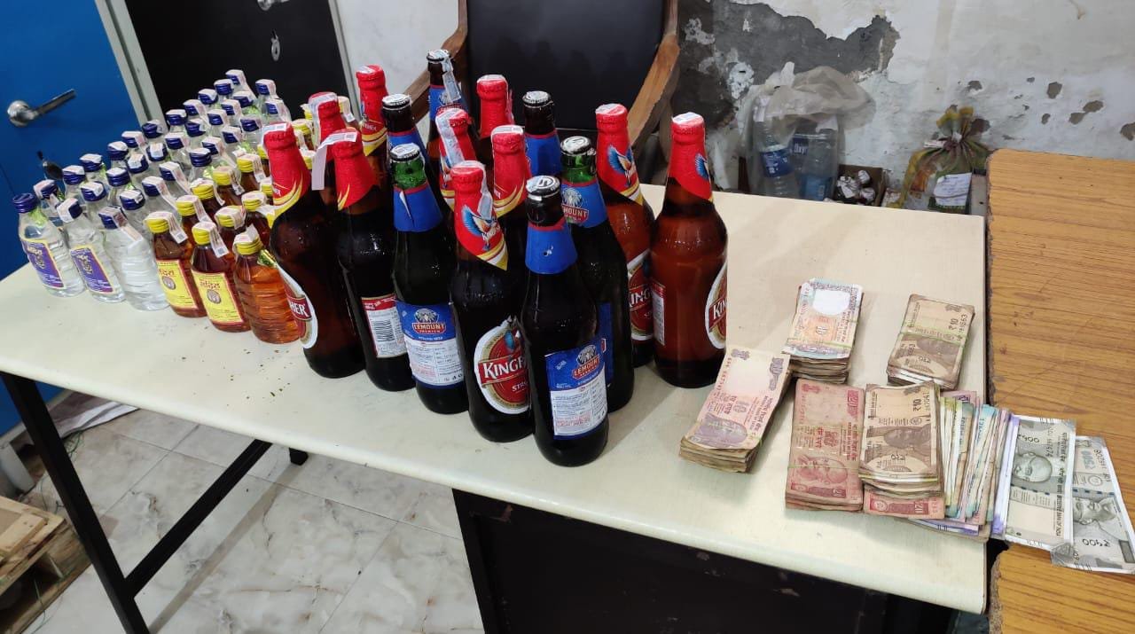 जबलपुर दर्पण क्राईम ब्यूरो। ग्वारीघाट थाना प्रभारी श्रीमति भूमेश्वरी चौहान से मिली जानकारी अनुसार दिनॉक 28-6-2022 को क्राईम ब्रांच को मुखबिर से सूचना मिली की पोलीपाथर में एक युवक शराब बेच रहा है,सूचना पर क्राईम ब्रांच एवं थाना ग्वारीघाट की संयुक्त टीम द्वारा पोलीपाथर मे दबिश दी गयी जहॉ मुखबिर के बताये हुलिये का युवक बोरी लिये खड़ा दिखा जो पुलिस को देखकर भागने लगा जिसे घेराबंदी कर पकडा एवं नाम पता पूछने पर अपना नाम मुन्नू ठाकुर उम्र 18 वर्ष निवासी पोलीपाथर बताया जिससे बोरी में रखी 54 पाव देशी शराब एवं 16 बॉटल बीयर कीमती 5760 रूपये की एवं जेब मे रखे नगद 12 हजार 500 रूपये जप्त करते हुये आरोपी के विरूद्ध धारा 34(ए), 36 आबकारी एक्ट के तहत कार्यवाही की गयी।