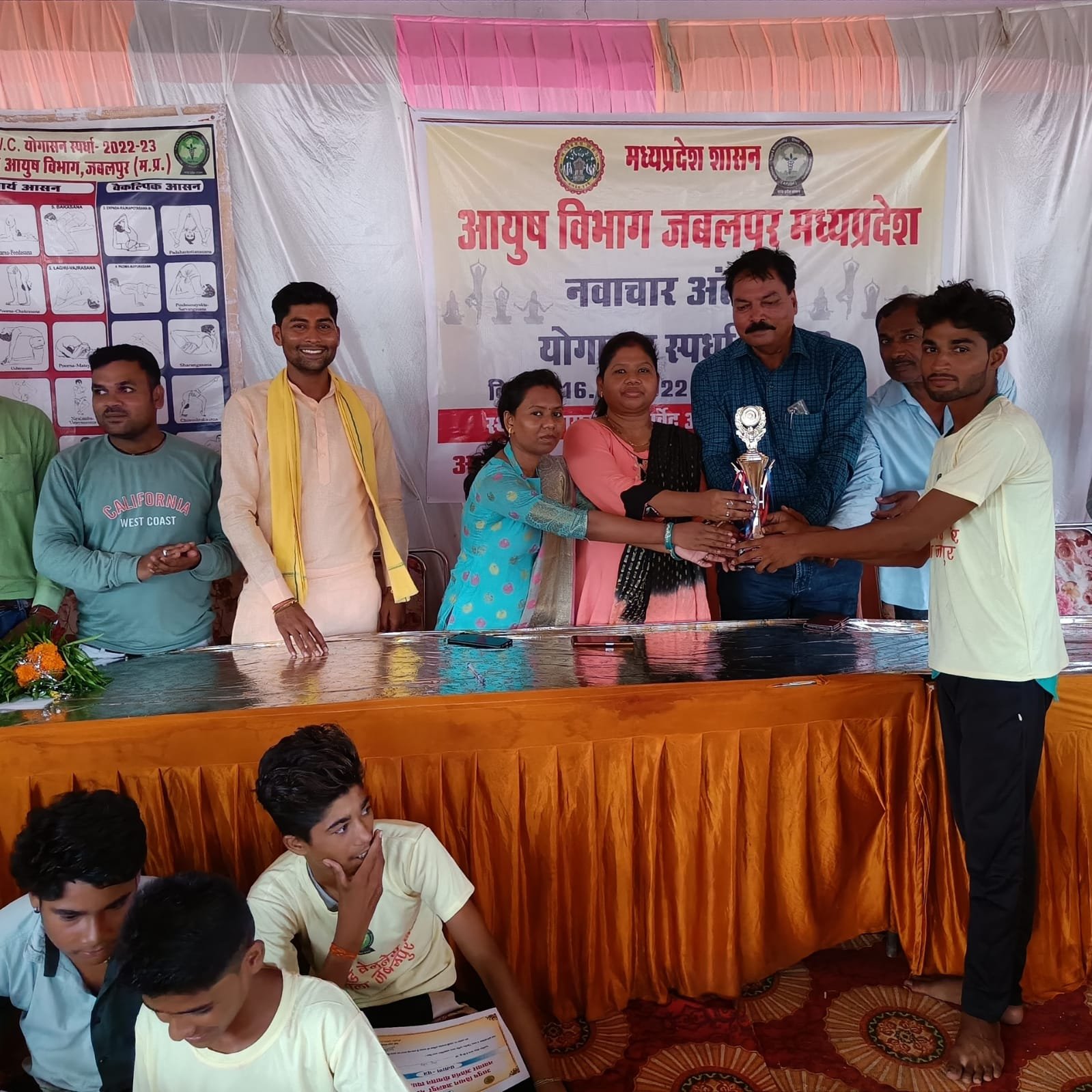 एवं योग सहायक रेखा यादव द्वारा दिया गया कार्यक्रम में जिला आयुष अधिकारी के साथ चिकित्सा’ अधिकारी डा. प्रियंका कश्यप उपस्थित रही साथ मैं ग्राम के गणमान्य नागरिक में गुलाव यादव सुखलाल यादव दीपक साहू, सनिल यादव आशीष साहू सत्यम नकुर, जाहर सिंह ठाकुर, उजयार सिंह ठाकुर, खूबचंद्र पटेल, अरविन्द्र पटेल, सुखदेव पटेल, राजू पटेल, दीपक विश्वकर्मा अल्लू पटेल सभी लोग उपस्थित रहे । गुलाव यादव एवं सुखलाल पटेल द्वारा ईनाम के रूप में नगद राशि प्रदान की जबकि दीपक साहू द्वारा विजेताओं को ट्राफी प्रदान की गई साथ हीआयुष विभाग द्वारा सभी प्रतियोगियों को योगा ड्रेस एवं प्रमाण पत्र वितरित किये गये कार्यक्रम में रोश्वर्य खरे प्रेम कुमार व इन्दर वेन का सहयोग उल्लेखनीय रहा कार्यक्रम का आयोजन योगेन्द्र श्रीवास्तव द्वारा किया गया