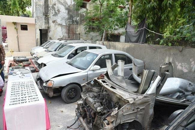 सूचना पर मुखबिर के बताये स्थान नौशाद अली जो आपराधिक प्रवृत्ति का व्यक्ति है उसके कबाड खाने मे दबिश दी जहाॅ नौशाद अली 5 इंजन एवं 15 चेचिस इसके साथ ही बिना नंबर की पुरानी माॅडल की सिल्वर रंग की एक्टिवा होण्डा एवं ग्रेकलर के पुराने माॅेडल की स्कूटर को काटने की फिराक मे था नौशाद अली पिता सज्जाद अली उम्र 46 वर्ष निवासी आठनल छोटी ओमती थाना बेलबाग से उक्त वाहनों के संबंध मे पूछतांछ कर दस्तावेज मांगे गये जो नहीं होना बताया तथा उक्त वाहन के वैध मालिक का कोई नाम पता भी नही बताया।