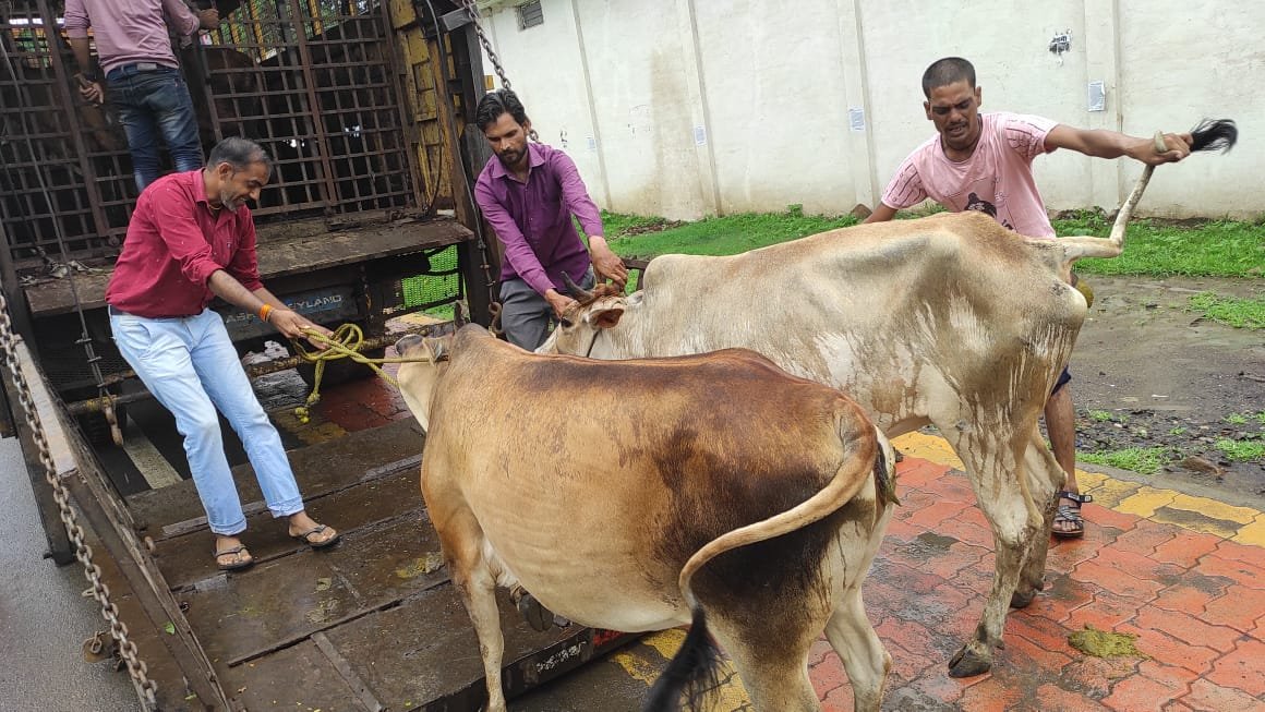आवारा पशुओं को पकड़कर पहुॅंचाया गौशाला