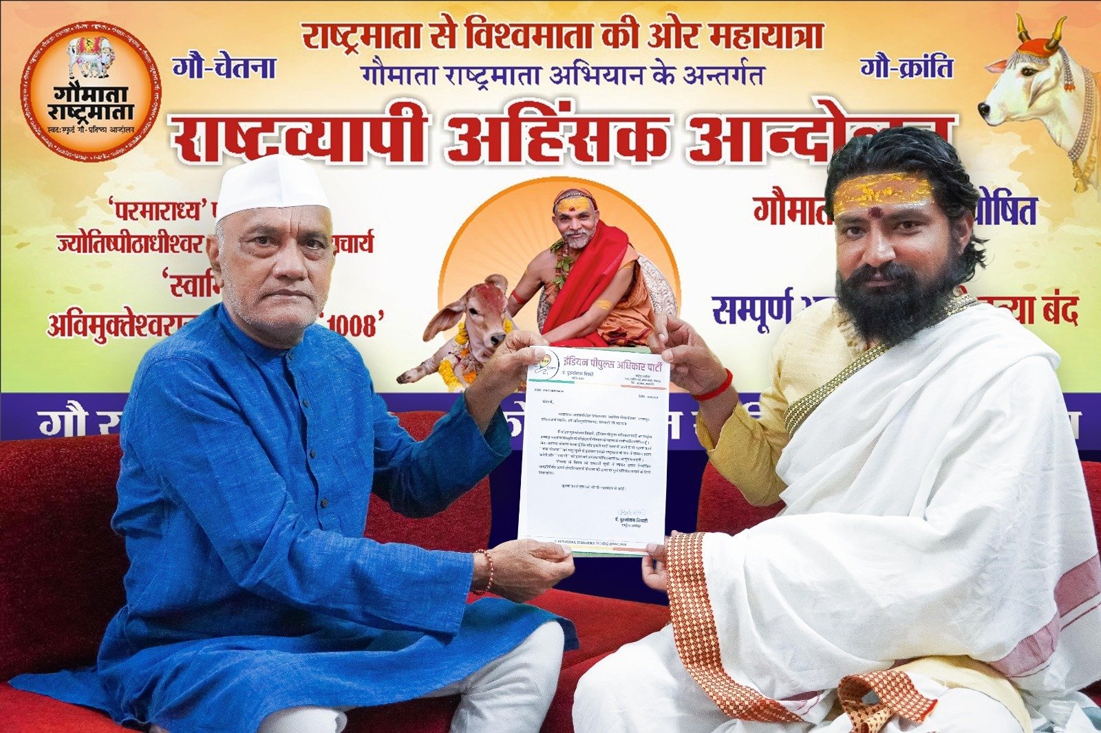 गौमाता को राष्ट्रमाता से विश्वमाता बनाने राष्ट्रव्यापी आंदोलन का इंडियन पीपुल्स अधिकार पार्टी समर्थन करती हैः पंडित पुरूषोत्तम तिवारी