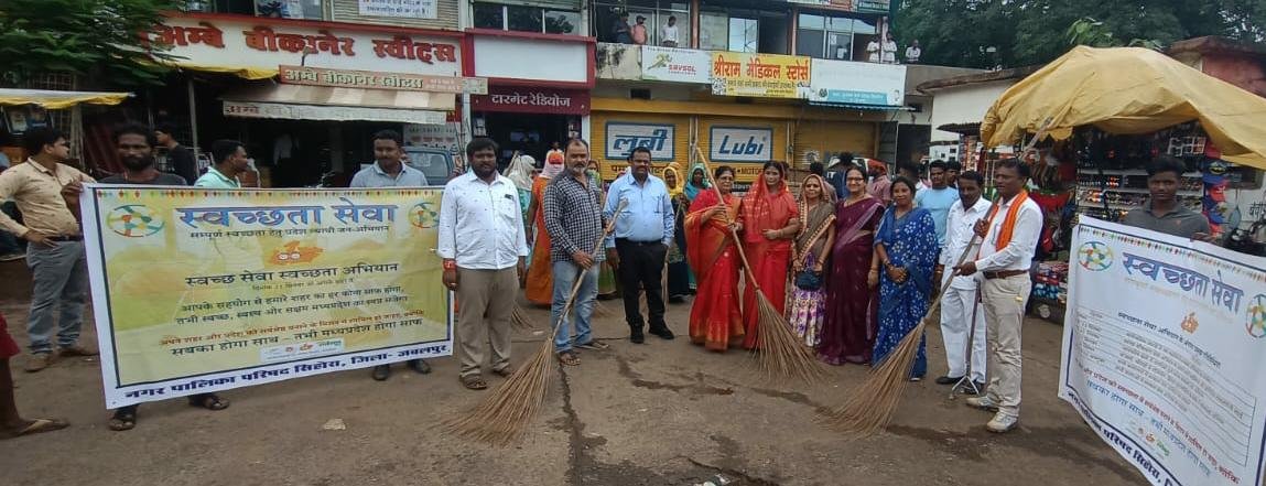 जबलपुर दर्पण सिहोरा ब्यूरो। जिले की सिहोरा नगर पालिका परिषद के द्वारा स्वच्छता सेवा सप्ताह का आयोजन बुधवार को नगर के विभिन्न प्रतिष्ठानो में जा कर किया गया। इस स्वच्छता अभियान में नगर पालिका परिषद सिहोरा के समस्त स्वच्छता कर्मचारी, नगर जनप्रतिनिधि के साथ साथ समाज के गणमान्य नागरिकों ने अपना योगदान दिया। वहीँ नगर पालिका प्रशासन व जनप्रतिनिधियों ने पुराने बस स्टैंड की साफ सफाई के साथ आसपास के दुकानदारों को सफाई रखने व पॉलीथीन का प्रयोग ना करने के दिशा निर्देश दिए। इस स्वच्छता अभियान के दौरान मुख्य नगर पालिका अध्यक्ष श्रीमती सन्ध्या दिलीप दुबे, मुख्य नगर पालिका अधिकारी लक्ष्मण सिंह सारस , नगर पालिका उपाध्यक्ष शारदा प्रसाद तिवारी, पार्षद प्रमोद चौधरी, पार्षद गौरादेवी विश्वकर्मा, पार्षद अंकुश नायक, पार्षद बेबी विनय पाल, पार्षद रीता अजय शुक्ला, पार्षद सुप्पी बर्मन, पार्षद श्रीमती कल्पना आलोक पांडे, पार्षद ममता गोंटिया, पार्षद रमेश पटेल, सहित नगर पालिका परिषद प्रशासन के उपयंत्री नमन श्रीवास्तव,राजस्व निरीक्षक शुशील वर्मा, संतोष सूर्यवंशी, संतोष तिवारी,के साथ अन्य कर्मचारियों की उपस्थित किया गया।