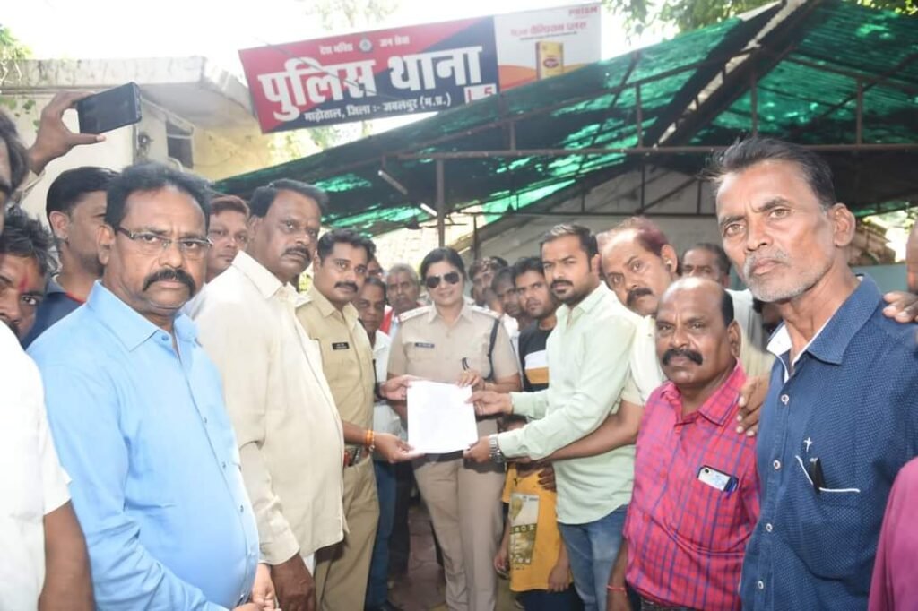 संदिग्ध परिस्थितियों में हुई मौत को लेकर परिजनों एवं सामाजिक कार्यकर्ता द्वारा माढोताल थाने का घेराव कर सौपा ज्ञापन
