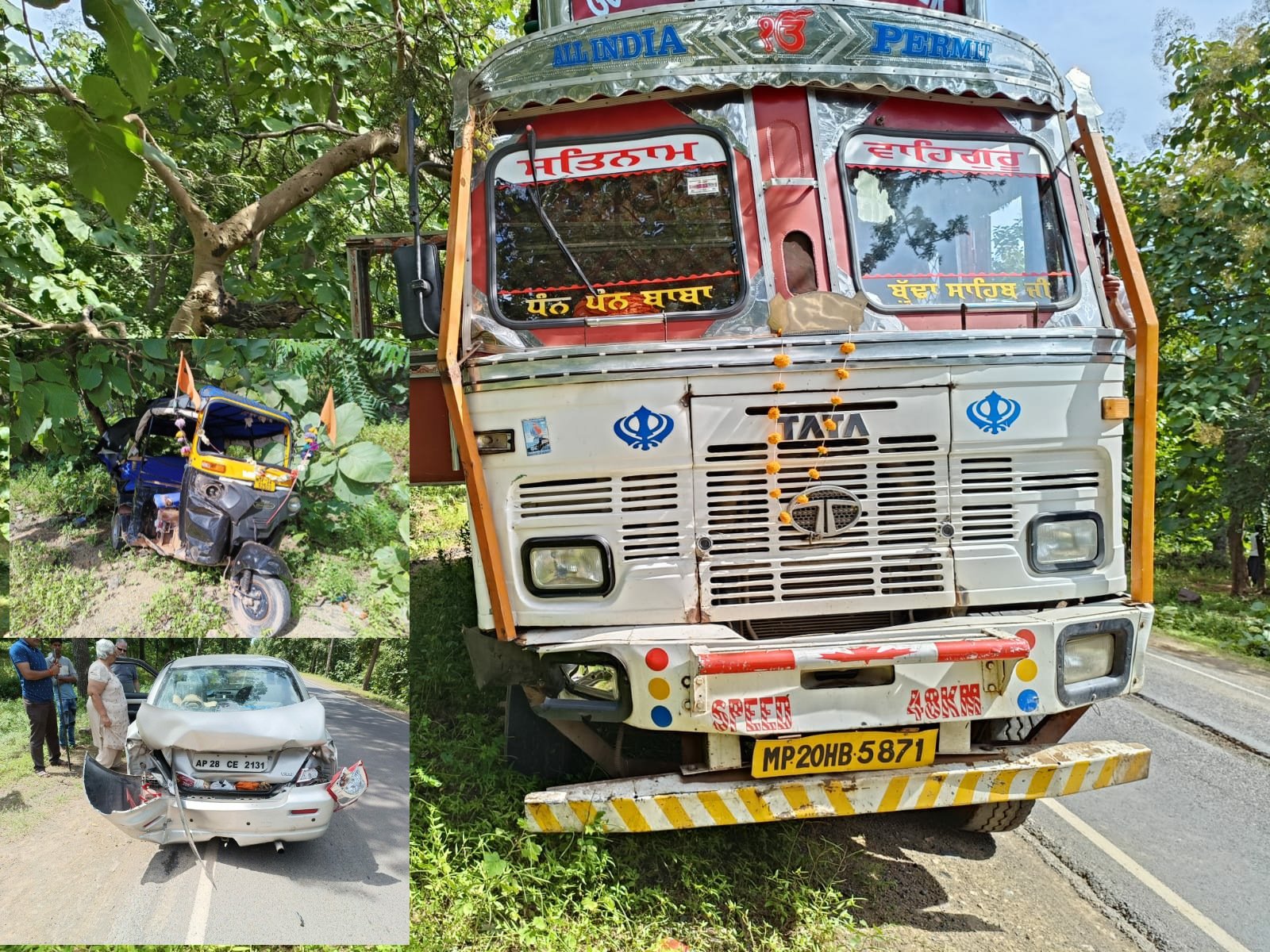 बेलगाम ट्रक,ऑटो को टक्कर मारते हुए स्विफ्ट कार से जा टकराया:हादसे में महिला की मौत,4 घायल