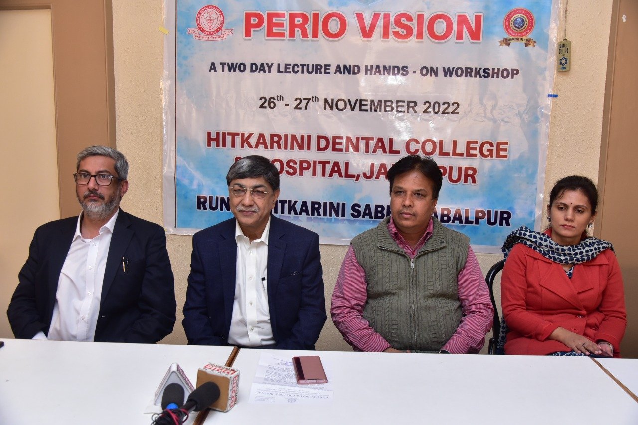 जबलपुर दर्पण। हितकारिणी दंत चिकित्सा महाविद्यालय में दो दिवसीय पेरियोडोन्टिक्स कार्यशाला पेरियो विजन का आयोजन 26 एवं 27 नवंबर 2022 को होने जा रहा है। इसमें विख्यात पेरियोडोन्टिस्ट एवं इम्प्लान्टोलॉजिस्ट डॉ. शालीन खेत्रपाल, सामान्य एवं नवीनतम डेंटल इंम्प्लान्ट पद्वति के संबध में जानकारी देंगें। इस कार्यशाला का उद्धघाटन डॉ. अशोक खंडेलवाल, कुलपति मध्य प्रदेश आर्युविज्ञान विश्वविद्यालय जबलपुर द्वारा किया जावेगा।