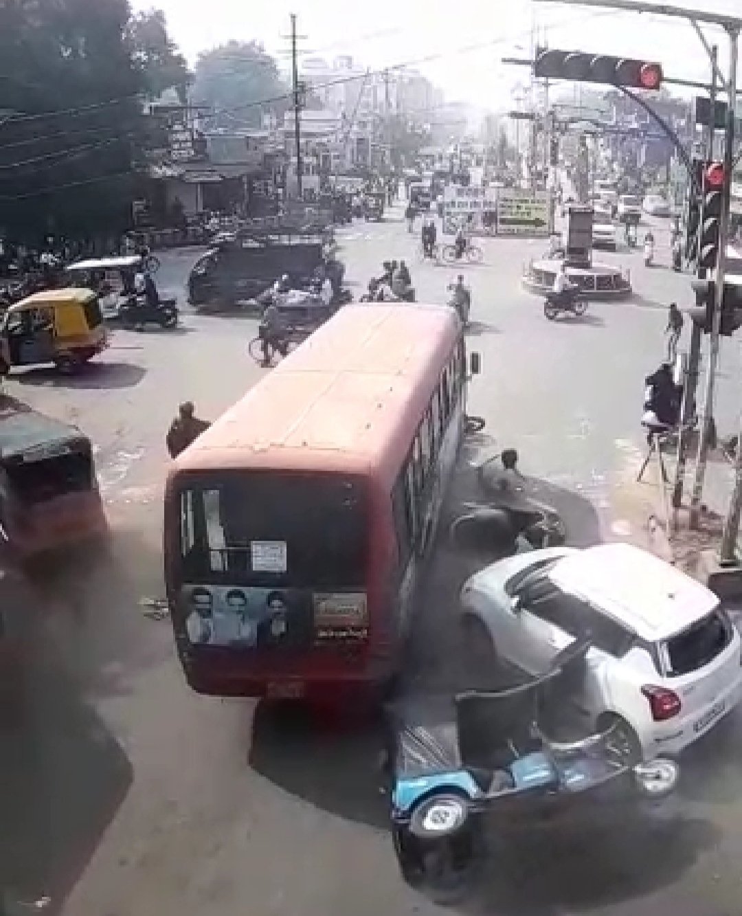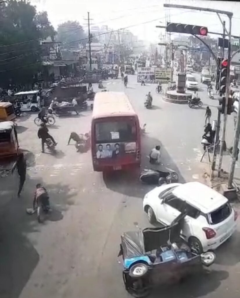 अनियंत्रित मेट्रो बस बाईक एंव ई- रिक्शा से टकराई