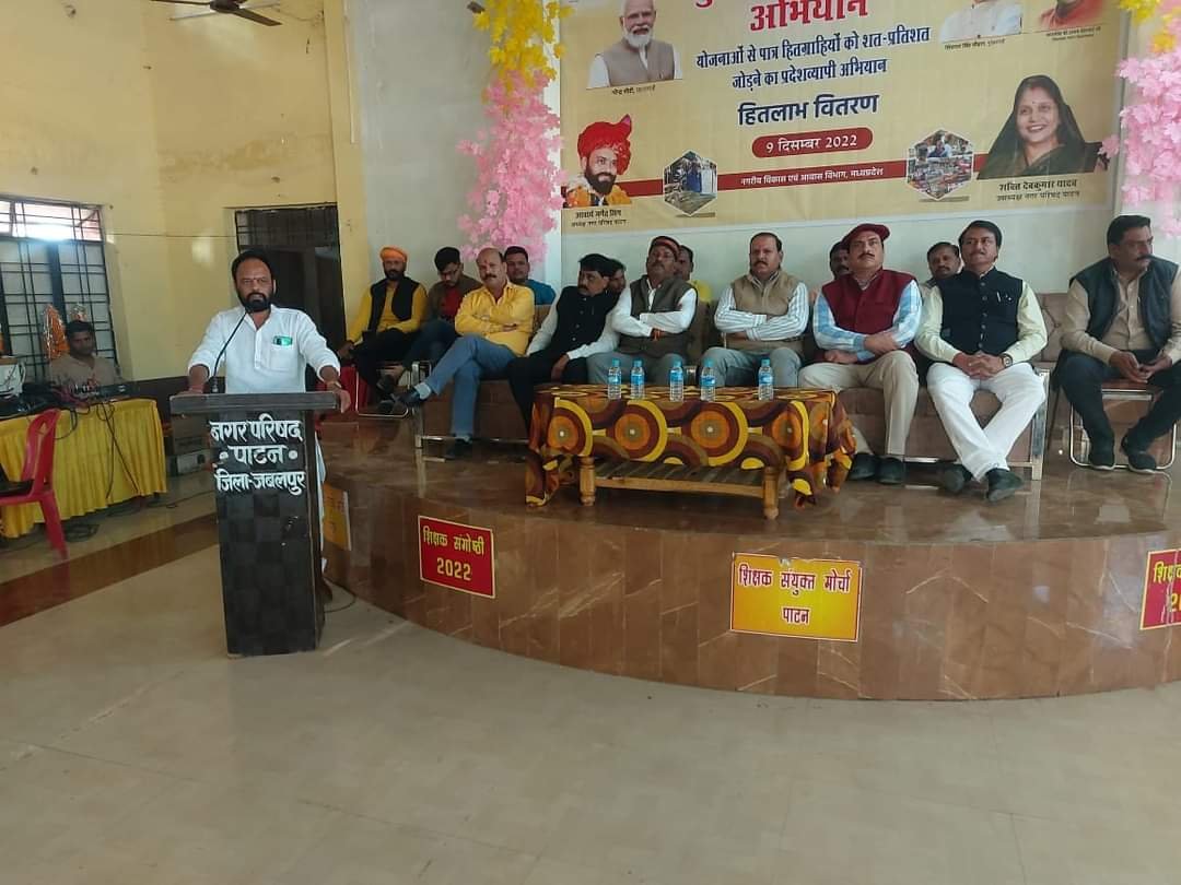 पाटन ब्यूरो/जबलपुर दर्पण। प्रदेश में विगत 2 माह से मुख्यमंत्री जन सेवा अभियान कार्यक्रम चलाया जा रहा है। सरकार की विभिन्न योजनाओं का लाभ हितग्राहियों को मिले इसके लिए प्रदेश के सभी नगर एवं ग्रामीण स्तर पर शिविरों का आयोजन किया जा रहा है। उसी कड़ी में आज सामुदायिक भवन में मुख्यमंत्री जन-सेवा हितलाभ अभियान के तहत भव्य कार्यक्रम का आयोजन किया गया जिसमें मुख्य अतिथि नगर परिषद अध्यक्ष आचार्य जगेंद्र सिंह, शक्ति देवकुमार यादव, परिषद के सभी पार्षद एवं जनप्रतिनिधियों सहित पाटन एसडीएम मो शाहिद खान, तहसीलदार प्रमोद चतुर्वेदी, सीएमओ नीलम चौहान एवं नगर परिषद के अधिकारी कर्मचारियों के साथ बड़ी संख्या में हितग्राही उपस्थित रहे। जिन हितग्राहियों से आवेदन लिए गए उन सभी हितग्राहियों को स्वीकृति पत्र का वितरण किया गया जिसमें राजस्व विभाग के 1197 स्वास्थ्य एवं परिवार कल्याण के 10 32 में से 973 नागरिक आपूर्ति के 245 सामाजिक न्याय के 165 नगरी विकास के 100 में से 78 आवेदन स्वीकृत किए गए थे जिन्हें आज स्वीकृति पत्र प्रदान किए गए जिससे समस्त हितग्राहियों के चेहरे खिल उठे।