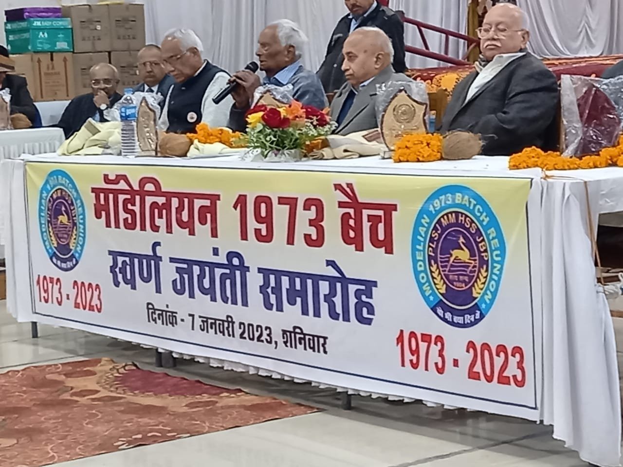 माडेलियन 1973 बैच का स्वर्णजयन्ती समारोह स्थानीय मॉडल हाइ स्कूल प्रेक्षागृह में हाई कोर्ट जज एवम शाला के पूर्व छात्र श्रवण शंकर झा के मुख्य आतिथ्य एवम रेलवे बोर्ड के एडिशनल मेंबर सेवा निर्वत शरद चन्द्र जेठी की अध्यक्षता में प्रारंभ हुआ।