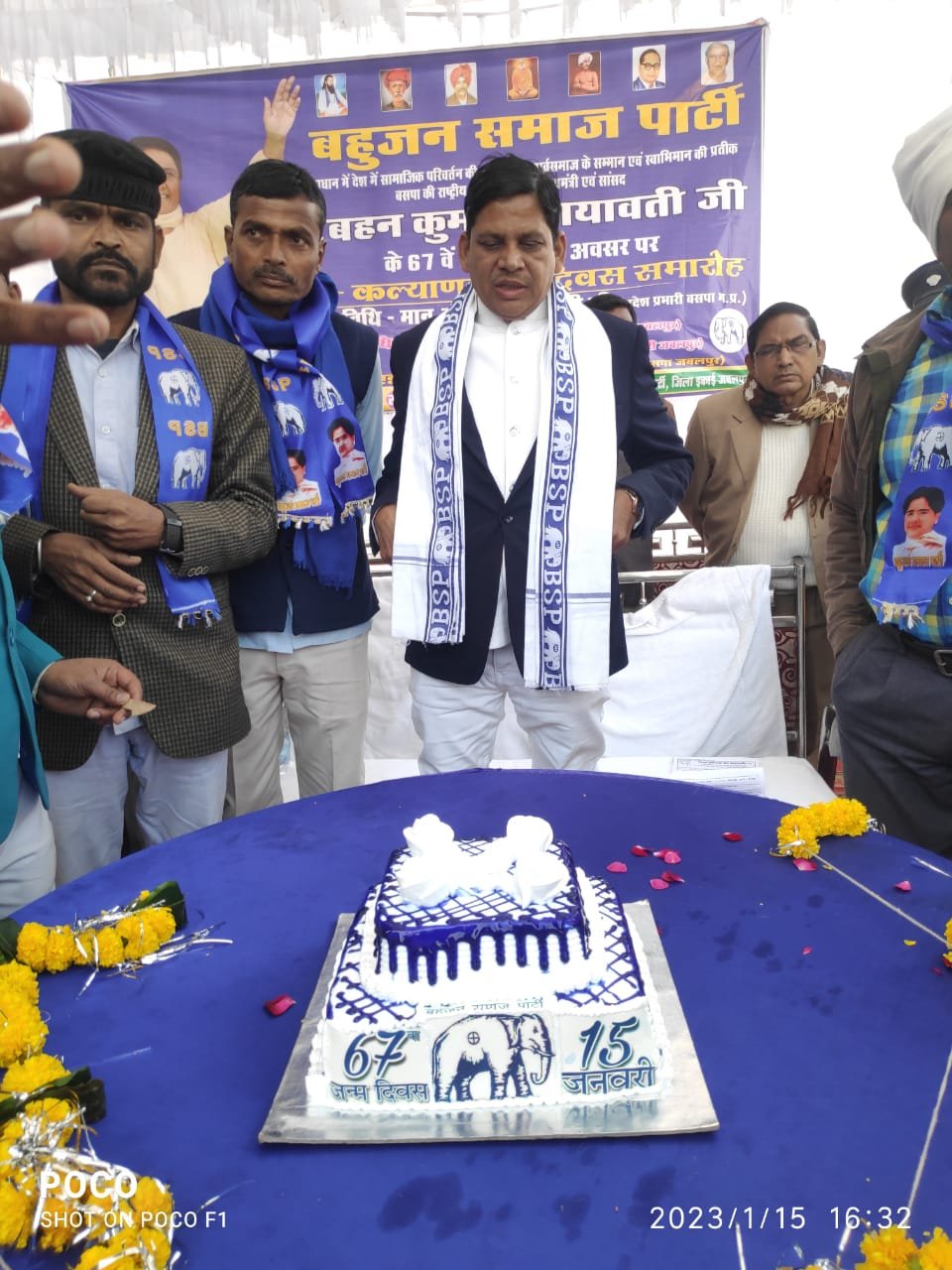 जबलपुर दर्पण। बहुजन समाज पार्टी जबलपुर जिला ईकाई द्वारा कांचघर चौक में सामाजिक परिवर्तन की महा नायिका, पूर्व मुख्यमंत्री उत्तर प्रदेश एवं बसपा की राष्ट्रीय अध्यक्ष मायावती जी का 67वॉ जन्मदिन जन कल्याणकारी दिवस के रूप में मनाया गया, बसपा जिला ईकाई द्वारा इस अवसर गरीबों को गरम कपडे, कंबल वितरित किये गये, समारोह के मुख्य अतिथि प्रदेश प्रभारी बालकिशन चौधरी ने कहा कि आज बहन जी के जन्म दिन पर हम सभी बसपा कार्यकर्ता मिशन 2023 के लिए जुट जायें और मध्य प्रदेश में सरकार बनाकर बहन जी को तोहफ़ा देंगे जैसा उनकी चाहत भी है, साथ उनके जीवन संघर्ष पर प्रकाश डालते हुये कहा की पुरुष प्रधान देश में एक गरीब वर्ग की बेटी ने घर से बहार निकलकर अपने पूरे जीवन को समाज के लिए लगा दिया, और उत्तर प्रदेश की चार बार मुख्यमंत्री बनकर गरीब वंचित समाज सहित सभी वर्गों के हितों के लिए काम किये हैं, उनको आयरन लेडी का खिताब मिला और उनकी नेत्रतव छमता को पूरे विश्व ने माना है,जिस तरह आज धर्म जाति के नाम पर राजनीति हो रही है इस समय बहन जी ने इस देश के नेताओ के लिए मानवतावादी बनने की प्ररेणा दी है, कार्यक्रम में बसपा कार्यकर्ताओं ने केक काटकर सभी को मिठाई बांटी, बसपा के जिला प्रभारी राकेश चौधरी, मानकलाल गोटिया, जिला अध्यक्ष एड लखन अहिरवार, एड दिनेश कुशवाहा, राकेश समुंदरे, डॉ सतपाल सिंह, जानकी प्रसाद, राजमणी साकेत, एड रामराज राम, विजय भौरेल, भोलेशंकर, लछमण चौधरी, राजकुमार सम्राट, सिकंदर अलि, आनंद जैसवाल, सुधा सिंह, आशा गोटिया, रिषभ साठे, शिव प्रकाश, नरेंद्र चौधरी, मुकेश सूर्यवंशी, रामप्रसाद चडार, बलराम चौधरी, नरेश चौधरी,कमल प्रसाद अहिरवार,एड रवि सतनामी, विजय बंशकार, रेशमा चौधरी, शिवरानी बिरहा, लछमन समुंदरे, प्रेम लाल, एड राकेश, मुन्ना सतनामी, दिलीप चौधरी, मुन्ना चौधरी, शेखर चौधरी, अमर चौधरी, कमलेश चौधरी, महेंद वंशकार, महेंद चडडा, सचिन बंशकार, आशा चौधरी, अजय अहिरवार, छोटेलाल चौधरी, पंडित राजेश, श्याम लाल कुशवाहा, विनोद चौधरी, विष्णु बर्मन, कमलेश विश्वकर्मा, राजेश अहिरवार,नीरज चौधरी, गोविंद प्रसाद, सुरेश बंशकार, मनोज सतनामी, दिनेश चौधरी, दौलत प्रसाद, चरण लाल, सहित बसपा कार्यकर्ताओं की उपस्थिति रही।