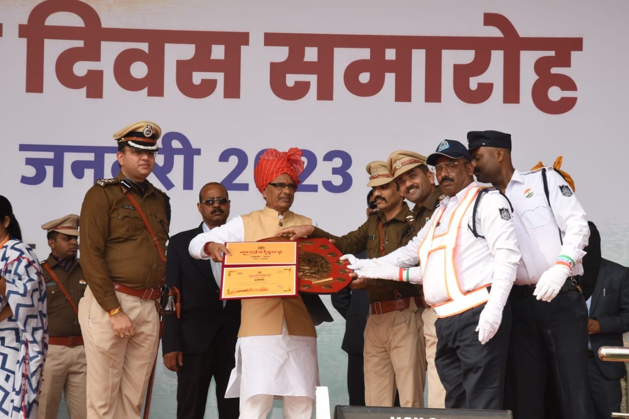 यातायात नियमों के प्रति जागरूता’ वाली झांकी को मिला प्रथम स्थान मुख्यमंत्री ने किया पुरूस्कृत