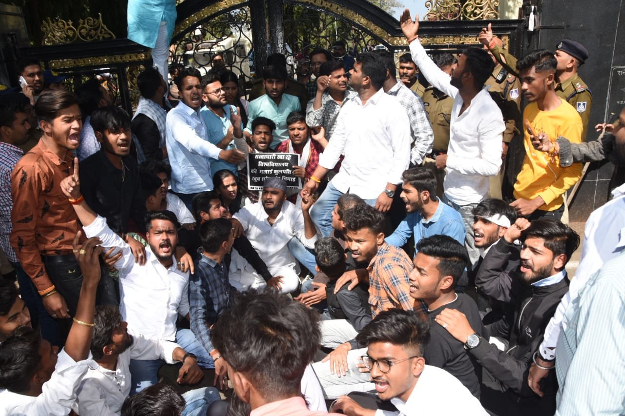 विश्विद्यालय में एनएसयूआई ने किया प्रदर्शन, तालाबंदी ओरधारा 52 की मांग