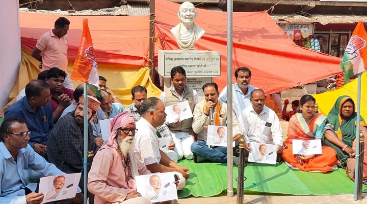गांधी प्रतिमा के सामने कांग्रेस कमेटी डिंडोरी का पुरजोर प्रदर्शन