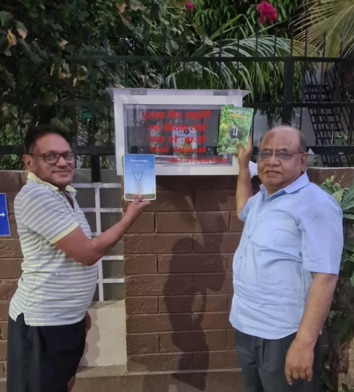 जबलपुर दर्पण। मीनाल रेजीडेंसी , भोपाल में विवेक रंजन श्रीवास्तव ने अपने आवास के सामने पुस्तक मित्र लाइब्रेरी का शुभारंभ रामनवमी के शुभ अवसर पर किया । अनेक पुस्तको के लेखक श्री सुरेश पटवा , प्रो चित्र भूषण श्रीवास्तव विदग्ध आदि रचनाकारों की लगभग 4000 रु मूल्य की किताबे इस छोटे से बुक शेल्फ में सार्वजनिक रूप से रखी गई हैं । “एक किताब रखो , एक ले जाओ ” पढ़ो पढ़ाओ के सुविचार के साथ यह अभियान शुरू किया गया है।