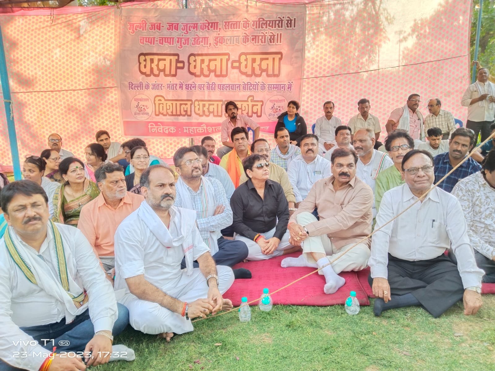 जंतर मंतर पर बैठी पहलवान बेटियों के समर्थन में आयोजित एक दिवसीय धरने में उमड़ा जबलपुर का खेल जगत