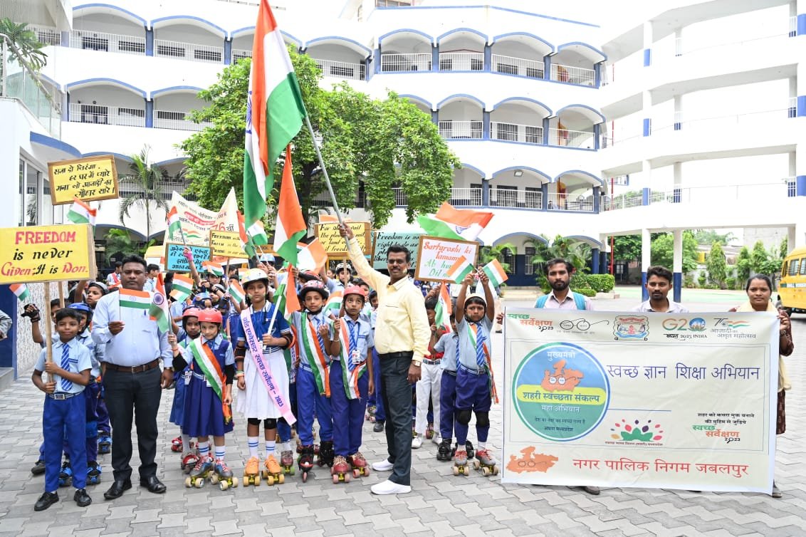 जबलपुर दर्पण। आजादी के अमृत महोत्सव के उपलक्ष्य में “हर घर तिरंगा” की श्रंखला में स्मॉल वांडर्स सीनियर सेकेंडरी स्कूल जबलपुर के उत्कृष्टता के 25 वर्ष पूर्ण होने के उपलक्ष्य में सोमवार को शाला के स्कैटिंग के विद्यार्थियों द्वारा तिरंगा यात्रा, योगाचार्य श्री राम किशोर सोनी जी के नेतृत्व में निकाली गई, इस रैली में मुख्य अतिथि सेवा निवृत्त लेफ्टिनेंट कर्नल विकास राव चौहान, अध्यक्ष ब्रह्म कुमारी विजय नगर शाखा की बी.के.नारायणी राजयोग प्रशिक्षक की उपस्थिति रही, साथ ही शाला के पेट्रेन श्री सुनील अग्रवाल जी, चेयरपर्सन श्रीमती नंदिनी अग्रवाल, डायरेक्टर श्रीमती पूनम अग्रवाल, प्रिंसिपल श्रीमती संगीता ग्रोवर, वॉइस प्रिंसिपल श्री विलियम डाइस ,हेड मिस्ट्रेस श्रीमती मोना चौकसे, एवं एकैडमिक कोऑर्डिनेटर श्री अनिल रजक की गरिमामयी उपस्थिति रही, मुख्य अतिथि श्री विकास राव चौहान जी ने शाला की उत्कृष्टता के 25 वर्ष पूर्ण होने पर बधाई देते हुए, कार्यक्रम की सराहना करते हुए विद्यार्थियों के उज्जवल भविष्य की कामना की, इस रैली का नेतृत्व शाला की छात्रा स्वच्छता सर्वेक्षण अभियान 2023 की ब्रांड एंबेसडर आराध्या तिवारी ने किया ।