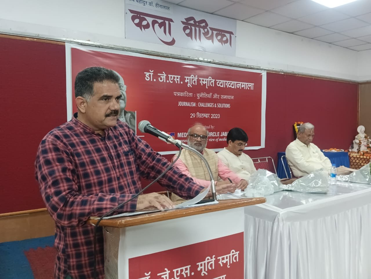 मीडिया स्टडी सर्किल के संयोजक लक्ष्मीकांत शर्मा ने डॉ. जे. एस. मूर्ति व्याख्यान माला के संबंध में विस्तृत जानकारी देते हुए कहा कि डा. मूर्ति जबलपुर की संस्कृति,सांस्कृतिक, साहित्यिक, कला, छायांकन व शैक्षणिक व शोध क्षेत्र में रचे बसे हुए थे। उनके दिल में जबलपुर धड़कता था। प्रत्येक वर्ष उनकी स्मृति में डॉ. मूर्ति के विद्यार्थी व्याख्यान देने के लिए आमंत्रित किए जाते हैं।कार्यक्रम में टीवी जर्नलिस्ट संजीव चौधरी, छायाकार बसंत मिश्रा, मुकुल यादव, सेवानिवृत्त प्रशासनिक अधिकारी वेदप्रकाश, लेखक पंकज स्वामी ने संक्षेप में डॉ. जे. एस. मूर्ति के व्यक्तित्व व कृतित्व पर अपने विचार व्यक्त किए। इस अवसर पर डॉ. जे. एस. मूर्ति की छात्रा चित्र प्रदर्शनी संयोजित की गई। डॉ. मूर्ति पर केन्द्रित एक स्मारिका का विमोचन अतिथियों ने किया।व्याख्यान माला कार्यक्रम में अतिथियों का स्वागत राजीव कुमार शुक्ल, राजेन्द्र चंद्रकांत राय व बसंत मिश्रा ने किया। कार्यक्रम का संचालन लक्ष्मीकांत शर्मा व संजय प्रसाद ने किया।