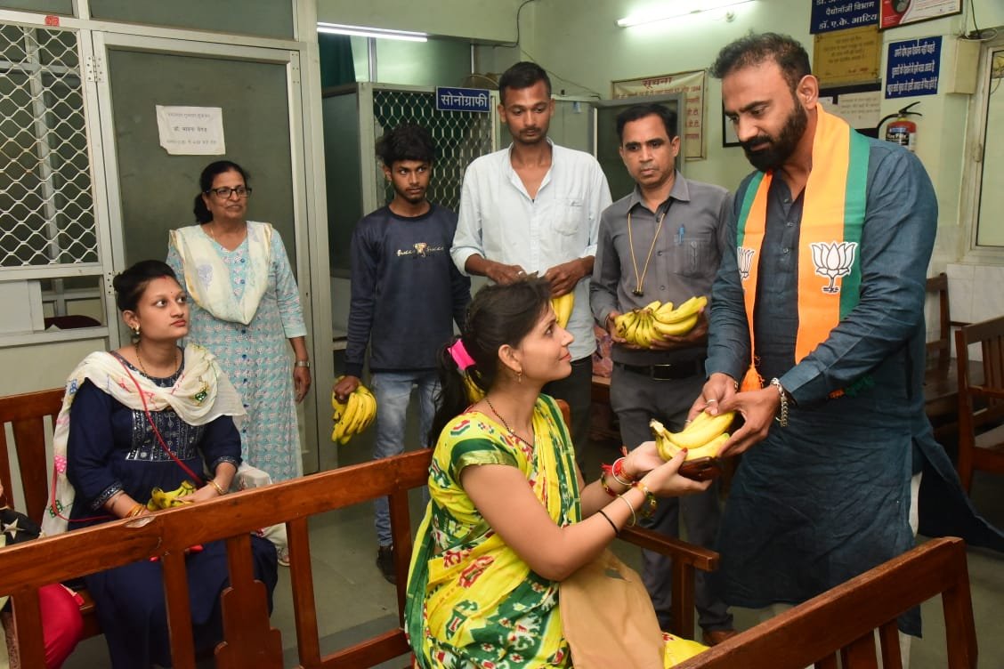भाजपा में शामिल हुए कांग्रेस नेता ने किया फल वितरण