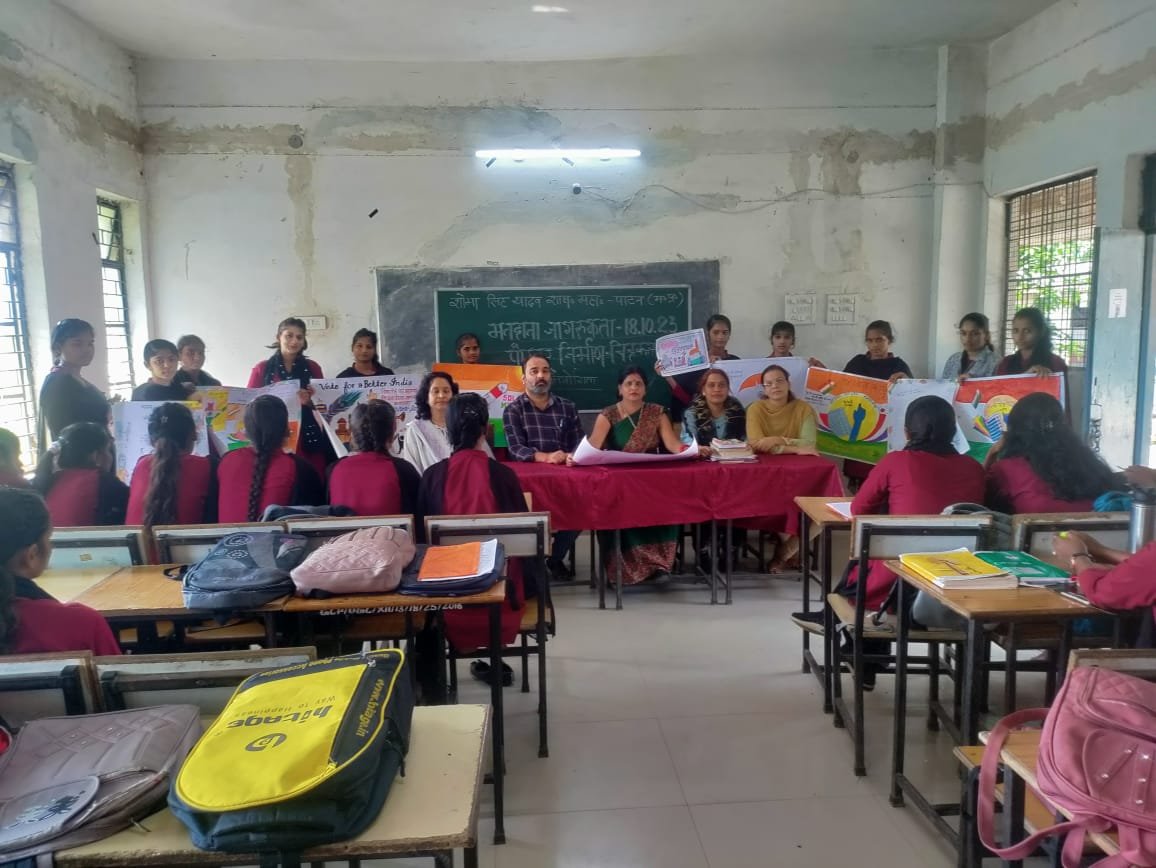 जबलपुर दर्पण। शोभा सिंह यादव शासकीय महाविद्यालय पाटन में निर्वाचन साक्षरता क्लब के अंतर्गत के अंतर्गत “पोस्टर प्रतियोगिता” का आयोजन महाविद्यालय की प्राचार्य डॉ. सुनीता शर्मा के मार्गदर्शन में किया गया। प्रतियोगिता में प्रथम स्थान राखी सिंह ठाकुर, ऋचा तिवारी बी.एस.सी. प्रथम वर्ष द्वितीय स्थान तनु ठाकुर, विशाखा पटैल बी.एस.सी. प्रथम वर्ष एवं तृतीय स्थान खुशी सिंह बी.ए प्रथम वर्ष, मुस्कान यावद बी.एस.सी प्रथम वर्ष ने प्राप्त किया। कार्यक्रम में डॉ. आशीष जैन, डॉ. विभा पाण्डेय, डॉ. सुनील गिरी, डॉ. गीता शर्मा एवं समस्त महाविद्यालयीन परिवार शमिल रहा।