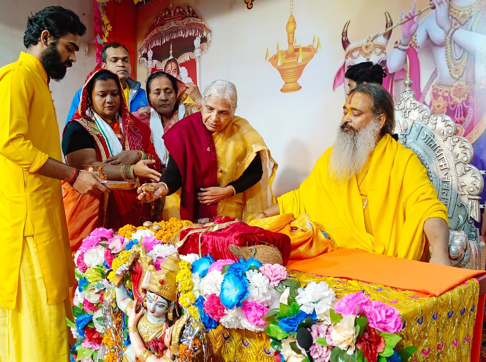 इस अवसर पर व्यास पीठ पूजन अर्चन यजमान श्री मती शालिनी पाण्डेय श्री मती गीता तिवारी,सावित्री उपाध्याय, विजय तिवारी,आचार्य रामफल शास्त्री ,कामता शास्त्री ,रामचरण दास ,लालमणि मिश्रा ,राम जी पुजारी, प्रवीण चतुर्वेदी , हिमांशु प्रियांशु,नरसिंह मंदिर गीता धाम भक्त मंडल, सनातन धर्म महासभा जबलपुर ने किया ।मार्ग शीर्ष अगहन मास पर भगवती लक्ष्मी श्री हरि नारायण, नवग्रह, षोणश मातृका, श्रीपीठ,व्यास पीठ श्रीमद्भागवत पुराण का पूजन अर्चन वैदिक आचार्यों ने किया।