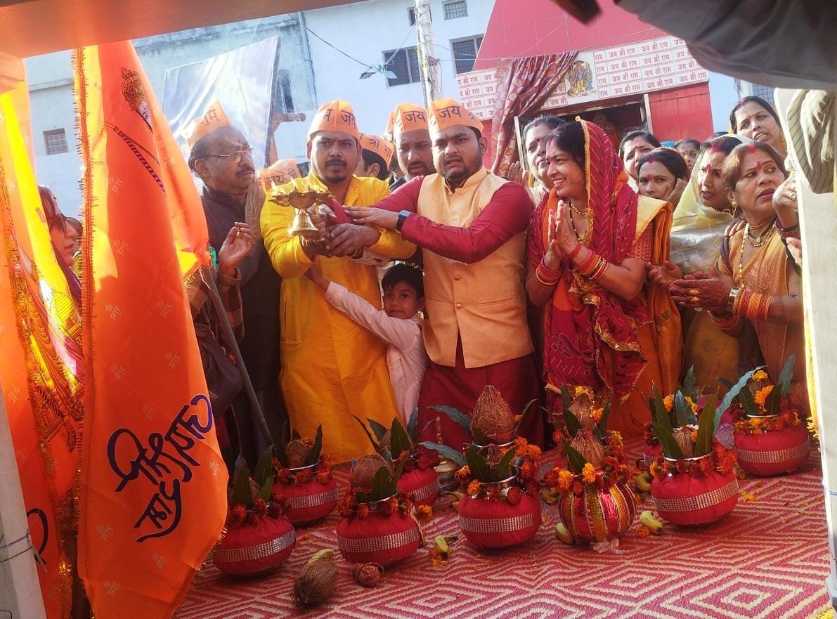 जबलपुर दर्पण। अयोध्या में 22 जनवरी को हो रहे प्रभु श्री राम प्राण प्रतिष्ठा समारोह हेतु भव्य कलश यात्रा अलग-अलग बस्तियां में निकाली गई एक यात्रा जगदीश मंदिर गढ़ाफाटक से प्रारंभ होकर गुप्ता कॉलोनी, बड़ी महाकाली, अन्नपूर्णा मंदिर, फुहारा, आगा चौक होते हुए हरदौल मंदिर गढ़ाफाटक में समाप्त हुई तो दूसरी खेरमाई मंदिर मानस भवन से महाराष्ट्र स्कूल होते हुए हनुमान मंदिर में समाप्त हुई जिसमें अनेक महिलाएं श्रद्धालु भक्त जय श्री राम का नारा लगाते हुए नजर आए। इस अवसर पर छोटे बच्चे सीताराम बनकर नजर आ रहे थे।