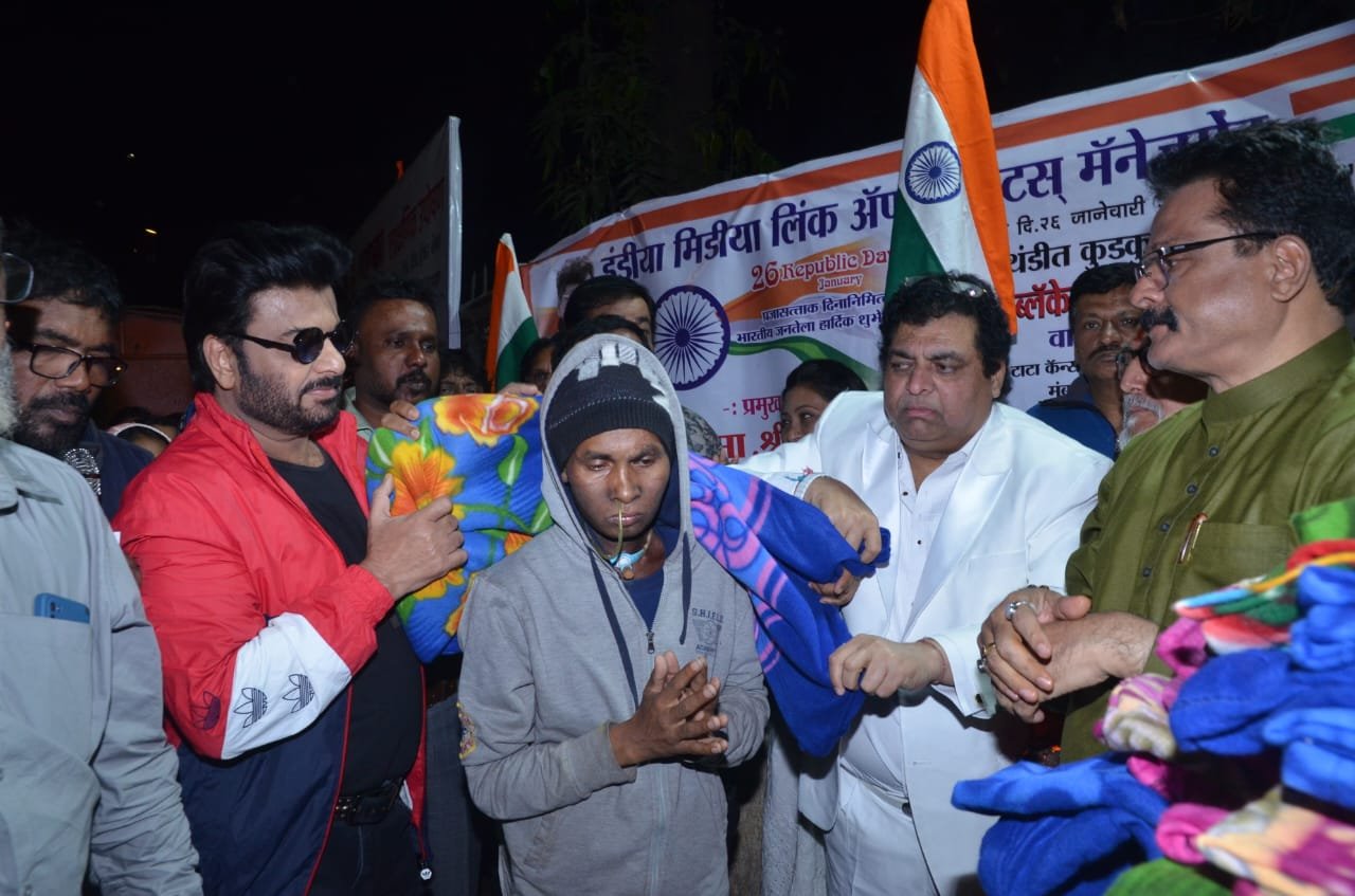 मुंबई। इंडिया मीडिया लिंक एंड इवेंट्स मैनेजमेंट के प्रबंध निदेशक के.रवि दादा ने आम जनता को एक भावनात्मक समाजिक संदेश दिया है कि मुंबईवासियों को भारत की वित्तीय राजधानी कही जानेवाली मुंबई में गरीबों और जरूरतमंदों के लिए पहल करनी चाहिए और उनकी मदद के लिए आगे आना चाहिए। भारत के 75वें स्वर्ण जयंती गणतंत्र दिवस के अवसर पर गणतंत्र की पूर्व संध्या पर केईएम और टाटा कैंसर अस्पताल परिसर में झंडोत्तोलन कार्यक्रम और कंबल, स्नैक किट और आकर्षक तिरंगे का वितरण रातभर किया । इस अवसर पर विभिन्न गणमान्य लोग उपस्थित थे । पूर्व पार्षद अनिल कोकील, जूनियर एक्टर अनिल कपूर, फिरोज खान, राजेश खन्ना, एक्ट्रेस ऐश्वर्या राय वकील वैशाली बोरुडे, बाला ठाकरे ऊर्फ देवदत्त भट्ट, बंडू लोंढे, अभिनेता राहुल रवि आदि उपस्थित थे । टाटा, केईएम अस्पताल क्षेत्र में रहनेवाले मरीजों और उनके पोते-पोतियों को ठंड से बचाने के लिए कंबल किट का वितरण पिछले 10 वर्षों से शुरू किया गया है और इस 11वें वर्ष में भी यह पहल सफलता पूर्वक की गई है । परेल से शुरू हुई कंबल वितरण की यह पहल जब भायखला पहुंची तो उन्होंने एक जरूरतमंद महिला को इस पहल से मिले उपहार को स्वीकार किया और के रवि दादा को कोटि-कोटि धन्यवाद दिया । छत्रपति शिवाजी महाराज टर्मिनस क्षेत्र में पहुंचने के बाद, सड़क पर सो रहे एक गरीब नागरिक की मदद करने के बाद वह अभिभूत हो गए । उस समय एक फ्रांसीसी विदेशी नागरिक ने यह सारा दृश्य अपनी आंखों से देखा तो उसने भरे मुंह से इस अनोखे पहल की सराहना की |