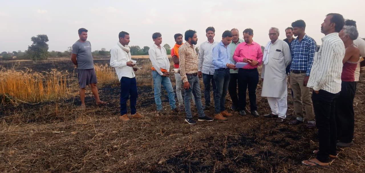 खेतों में आग लगने से 25 एकड़ गेहूं की फसल 50 पाईप और तार खाक