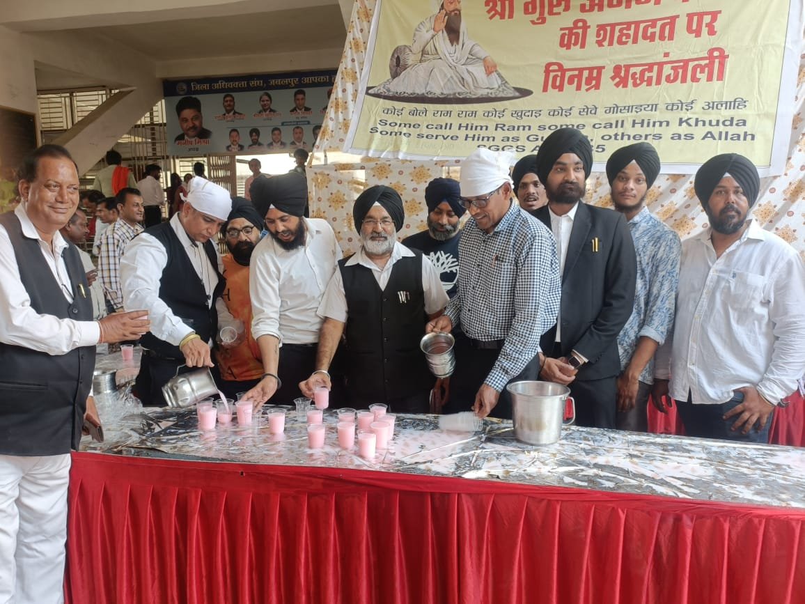 जबलपुर दर्पण। जिलाअधिवक्ता संघ जबलपुर मध्य प्रदेश के सहयोग से 1 जून 2024 को सिखों के पांचवे गुरु अर्जन देव का शहीदी दिवस मनाया गया,जहां स्टेट बार काउंसिल मध्य प्रदेश के वाइस चेयरमैन आरके सिंह सैनी,खालसा लीगल एड के अध्यक्ष एन एस रूपराह , जिला अधिवक्ता संघ के अध्यक्ष मनीष मिश्रा , कार्यकारिणी सदस्य सुधीर सिंह सैनी , अवतार सिंह , एडवोकेट शरणजीत सिंह एडवोकेट सुखवीर सिंह एडवोकेट गुरप्रीत सिंह एडवोकेट परमिंदर सिंह लांबा एडवोकेट कुलजीत सिंह मखीजा बलजीत सिंह एडवोकेट उज्जल सिंह एडवोकेट अमरजीत सिंह सग्गू एडवोकेट समरजीत सिंह नवतेज सिंह एवम एडवोकेट मौजूद रहे। जिन्होंने गुरु महाराज के शहीदी दिवस पर श्रद्धांजलि देकर मीठा शरबत छबील वितरित किया।