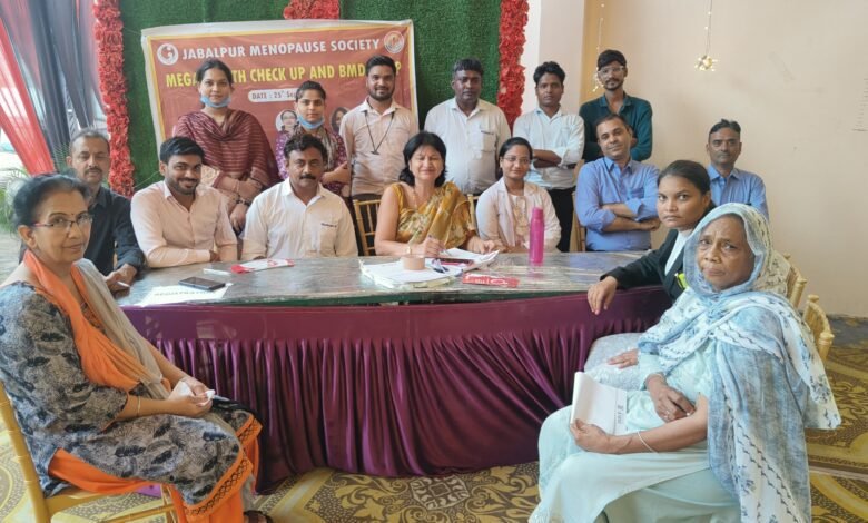 जबलपुर दर्पण। जबलपुर एवं इंडियन मीनॉपोज समिति, अधारताल लेडीज क्लब के द्वारा पहारिया पैलेस में नि:शुल्क स्वास्थ्य शिविर आयोजित किया गया। जिसमें स्त्री रोग विशेषज्ञ चिकित्सकों के द्वारा महिलाओं की आवश्यक जांच करते हुए उनका स्वास्थ्य परीक्षण किया गया। इस दौरान रक्तचाप, हाइट, वजन, रक्त परीक्षण जैसे हीमोग्लोबिन, रक्त शर्करा, थायराइड, टीएसएच, हड्डियों का घनत्व, बीएमआई आदि की जांच की गई। रजिस्ट्रेशन में मीनोपॉज के समय होने वाली तकलीफ ों की विस्तृत जानकारी फ ार्म में भरी गई।