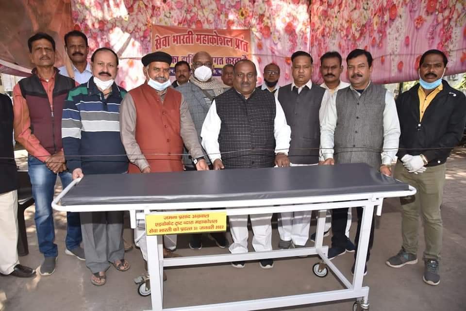 जबलपुर दर्पण। जिला चिकित्सालय विक्टोरिया में चल रहे सेवा भारती के सेवा केंद्र को जमना प्रसाद अग्रवाल एडवोकेट ट्रस्ट की ओर से एक व्हील स्ट्रेचर प्रदान की गई। इस अवसर पर महाकोशल प्रान्त सेवा प्रमुख डॉ सुरेन्द्र, संगठन मंत्री महेश, वीरेंद्र जी, अनिल जी, प्रदीप किरार, लालू यादव, अखिलेंद्र सिंह, राजेन्द्र चौधरी, सचिन अग्रवाल, सुधीर नायक, चन्द्रभान कोष्टा, ब्रजभूषण दुबे, विनोद विश्वकर्मा, राजेश साहू, राजेश सोनकर सहित सेवा भारती के पदाधिकारी उपस्थित रहे।