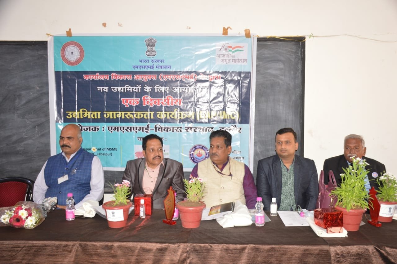जबलपुर दर्पण। एमएसएमई मंत्रालय भारत सरकार का आयोजन संस्थान इंदौर इनक्यूबेशन सेंटर स्मार्ट सिटी जबलपुर द्वारा एवं हितकारिणी महिला महाविद्यालय जबलपुर में एक दिवसीय उद्यमिता जागरूकता कार्यक्रम का आयोजन किया गया। कार्यक्रम के मुख्य अतिथि संयुक्त संचालक एमएसएमई इंदौर संस्थान डीसी साहू थे, डॉक्टर सुनील नहाटकर, जुमा मुखर्जी, संयोजक इंजीनियर गौरव गोयल, योगेश चंद्र, डॉ निलेश पांडे उपस्थित रहै। इंजीनियर गौरव गोयल जी ने जागरूकता कार्यक्रम की रूपरेखा को विस्तार से समझाया था कार्यक्रम के उद्देश्य के बारे में बताया मुख्य अतिथि डीसी साहू जी ने सरकार की विभिन्न योजनाओं के बारे में विस्तार पूर्वक छात्राओं को जानकारी प्रदान की एवं सफल उद्यमी बनने के लिए प्रेरित किया डॉक्टर सुनील नाहटकर जी ने कृषि के क्षेत्र में सफल उद्यमी बनने की राह दिखाई तथा बताया कि भारत देश एक कृषि प्रधान देश है तो इसमें स्वरोजगार और रोजगार के बहुत अवसर उपलब्ध हैं।