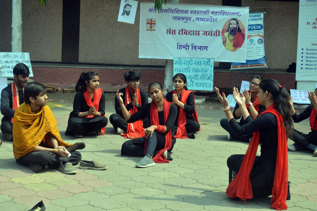 जबलपुर दर्पण। संत रविदास का व्यक्तित्व , उनके वचन , उनका सादा जीवन और उच्च विचार आज भी प्रासंगिक और अनुकरणीय है। वे एक ऐसे ज्योति स्तंभ हैं जिनसे समाज सदैव आलोकित होता रहेगा। उपर्युक्त विचार महाविद्यालय के प्राचार्य डॉ . फा . वलन अरासू के द्वारा अभिव्यक्त किए गए। संत अलॉयसियस महाविद्यालय के हिंदी विभाग द्वारा दिनांक 19 फरवरी को संत रविदास जयंती के उपलक्ष्य में नुक्कड नाटिका का मंचन किया गया। जाति – पाँति व्यवस्था कर्मशीलता और धार्मिक अंध विश्वास जैसे विषयों पर संत रविदास के दोहों को संवाद रुप में ढालकर नुक्कड नाटिका प्रस्तुत की गई इस अवसर पर उप प्राचार्य डा कल्लोल दास, डॉ रामेन्द्र प्रसाद ओझा, डॉ कैरोलिन सैनी, डॉ . रीना थॉमस, सुश्री श्रेया पटेल, ऋषभ शर्मा, सुमित पांडे, शांभवी भनोट, प्रबल राय, रागिनी नापित, दीपेश सोनी, केशव कुमार , नेहा कुशवाह, अदिति मिश्रा, छवि नायडू, कृष्णा जायसवाल, गंगा चौकसे, अस्मिता वर्मा आदि उपस्थित रहे।