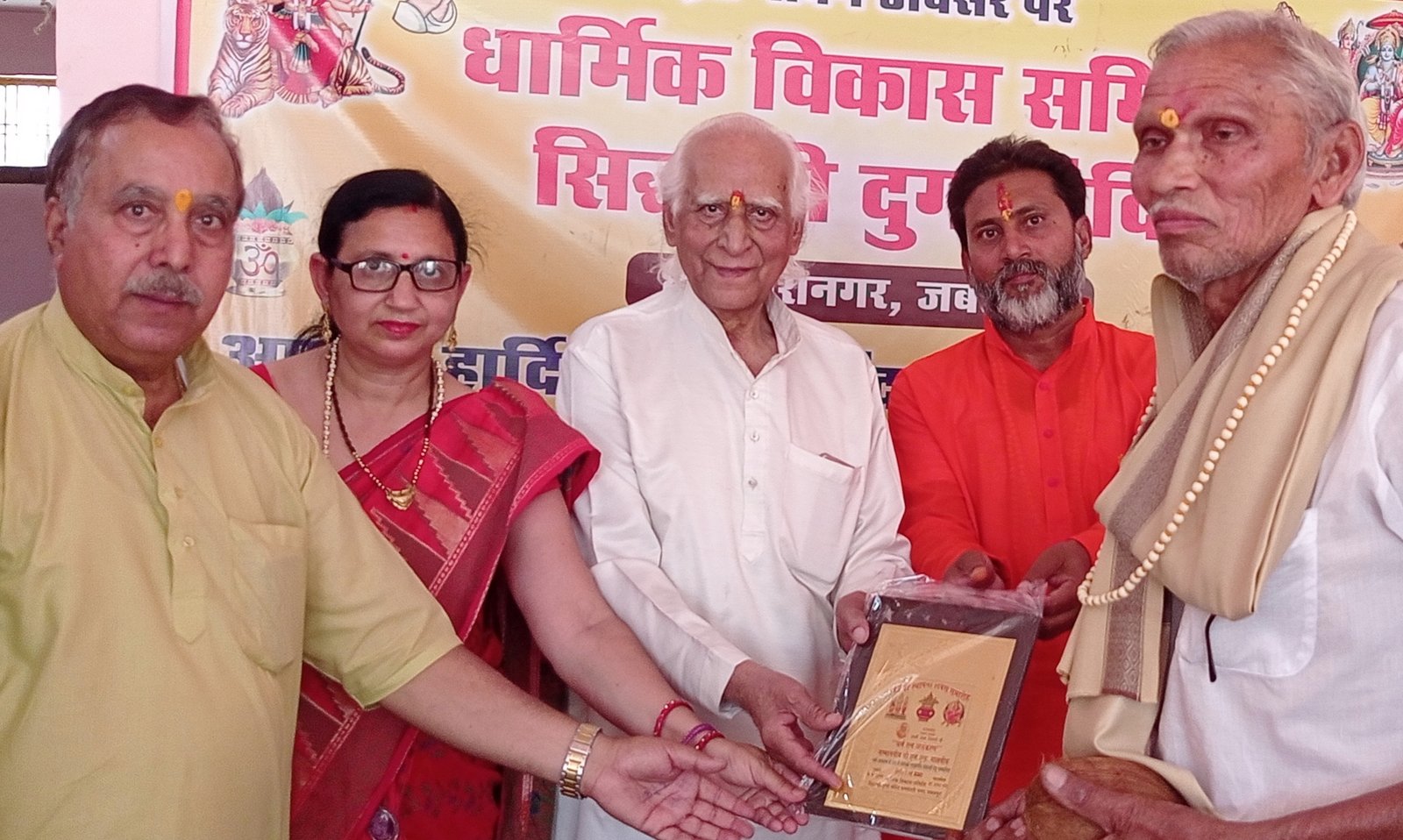 जबलपुर दर्पण। विगत तीन दशकों से धर्म, संस्कृति और सुसंस्कारों के विकास में सतत् संलग्न धर्मनिष्ठ विभूतियों के सम्मान से आध्यात्मिकता और धर्मनिष्ठा में अभिवृद्धि होगी। उक्त उद्गार सिद्ध श्री दुर्गा मंदिर धनवंतरी नगर के 43 वें स्थापना दिवस पाटोत्सव समारोह के अंतर्गत धर्म और अध्यात्म क्षेत्र की विशिष्ट विभूतियों को धर्मरत्न अलंकरण से अलंकृत करते हुए अतिथियों ने व्यक्त किए। अनेक धर्मग्रंथों के रचयिता प्रख्यात साहित्यकार आचार्य भगवत दुबे के मुख्यातिथ्य,राज्य शिक्षा सलाहकार डॉ.श्रद्धा तिवारी की अध्यक्षता तथा भागवताचार्य पवित्रा दीदी व नीलकंठ महाराज के विशिष्ट आतिथ्य में संपन्न समारोह में सर्वश्री मूलचंद दुबे, सतीश दुबे, एस के मिश्रा, आर के पांडे,अनिल दुबे,सोमू चक्रवर्ती व श्रीमती मंजू राघवन को धत्मरत्न अलंकरण से अलंकृत किया गया। समारोह में भागवताचार्य रामछवि महाराज, डॉ. एच .पी. तिवारी,राजेश पांडे, डॉ . संदीप नेमा, शेष नारायण पाराशर, दीपक पचौरी, आर सी गांधी, उर्मिला गांधी, प्रीता अवधिया, मालती पटेल, डी एस जाटव, ए के चौधरी, डी के परोहा, कैलाश शर्मा, विनोद अग्निहोत्री, मधुसूदन दुबे व कमल किशोर तिवारी उपस्थित रहे।